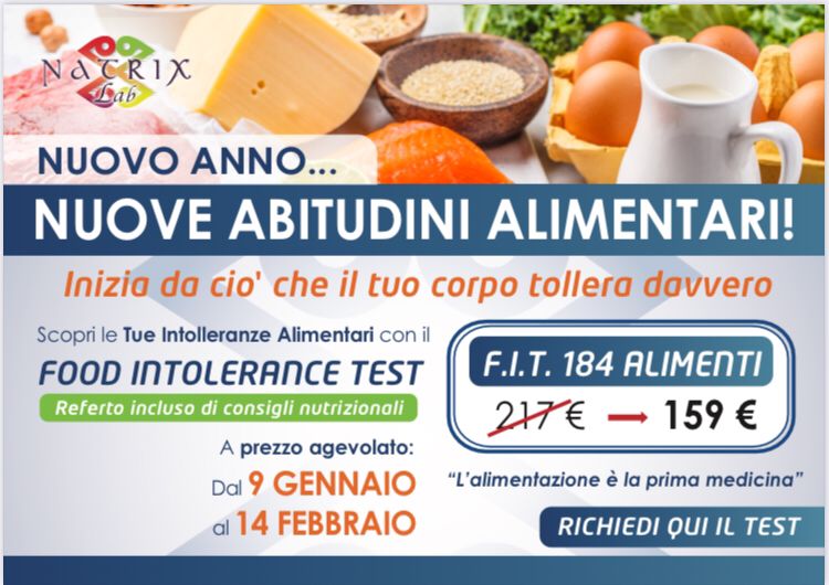 Intolleranze alimentare in promozione dal 9 di Gennaio al 14 Febbraio a € 159 anziché € 217.